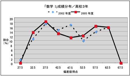 調査時期が接近していて、当面の高校生にとっては、指導内容にさしたる変化が無かったことを考慮すれば当然の結果とも言える。むしろ学力が回復したと見るなら,それは教師と一部生徒の努力の成果であるのかもしれない。