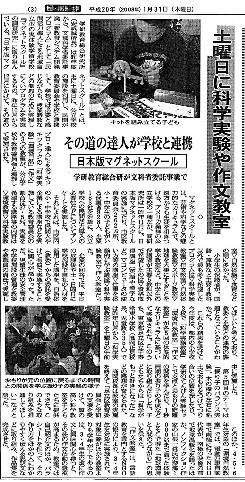 TOP > トピックス > 学研教育総合研究所に関連する記事が、教育新聞(平成20年1月31日付)に掲載されました。
