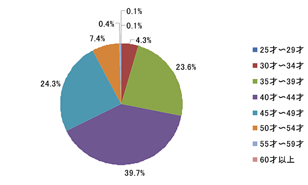 - 回答した保護者の年齢をみてみよう(図0-4参照)。40才~44才の保護者の割合が最も高く(39.7%)、次いで45才~49才(24.3%)、35才~39才(23.6%)の順になっている。