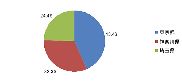 - 回答した保護者の住んでいる所は、43.4%の者が東京都、32.3%の者が神奈川県、24.4%の者が埼玉県となっている(図0-5参照)。