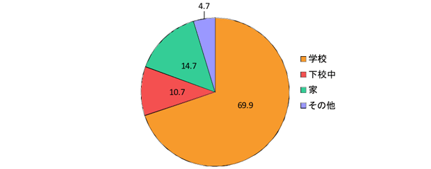 冒頭に記したように、東日本大震災は平日の午後に発生した。小学校の多くは春休みに入る前、通常の授業を終えるかどうかという時間帯であった。では、あのとき、子どもたちはどこにいたのであろうか。本調査に先立って、「東日本大震災が発生したとき、子どもがどこにいたか」を尋ねているので、その結果から示しておこう。図1-0は、子どもを持つ保護者8,515名による回答の結果注2)である。これに示されるように、約7割の子どもは「学校」にいたことがわかる。さらに、約1割(10.7%)が「下校中」であったことを考慮すると、約8割の子どもが「学校」にいたか、あるいは「下校中」で自宅に到着する前であったといえる注3)。