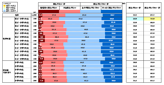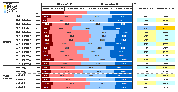 小学生の子を持つ保護者にPTAへの関わりの度合いについて4段階で回答してもらったところ、「積極的に関わっている」「まあ関わっている」が合わせて45.2%、「あまり関わっていない」「全く関わっていない」が合わせて54.8%となった。全体としては関わっているグループより関わっていないグループの方が多いようだが、差は9.6ポイントと、だいたい半々のようだ。