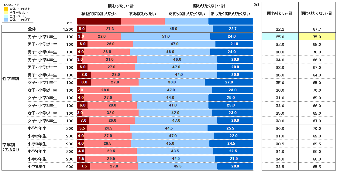 一方、「あなたは、PTAとの関わりについてどう思いますか。」という質問に対する回答が【図52-2】だ。「積極的に関わりたい」「まあ関わりたい」が合わせて32.3%、「あまり関わりたくない」「全く関わりたくない」が合わせて67.7%となった。前述の実際の関わりの度合いとはギャップがあり、本当は関わりたくないが仕方なく参加しているという層が一定数いることが想像できる。
