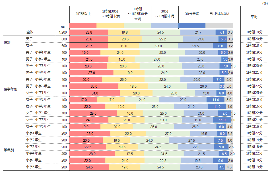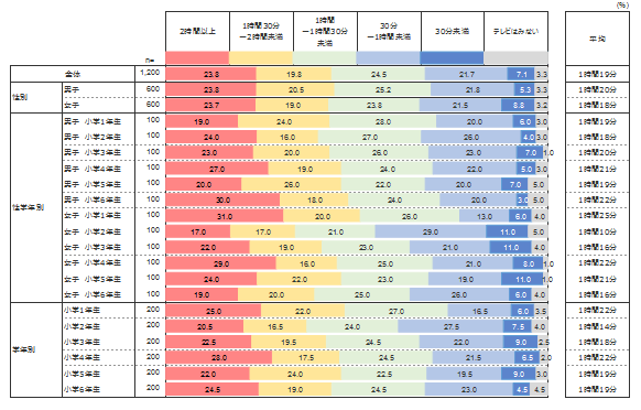 22時以降の過ごし方 で第1位だった「テレビ」だが、1日のうちで小学生はどれくらいの時間をテレビに費やしているのだろうか。