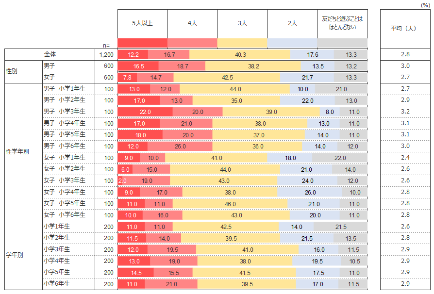 子どもたちは友だちと遊ぶとき、何人で集まって遊んでいるのだろうか。