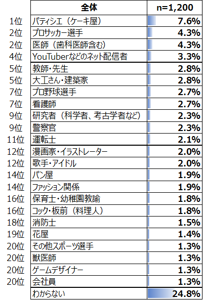 小学生が将来つきたいと考えている職業は何だろうか。