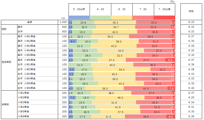 規則正しい生活を送るためには早起きは基本的な習慣として身に付けたいところであるが、小学生は毎日何時頃に起きているのだろうか。
