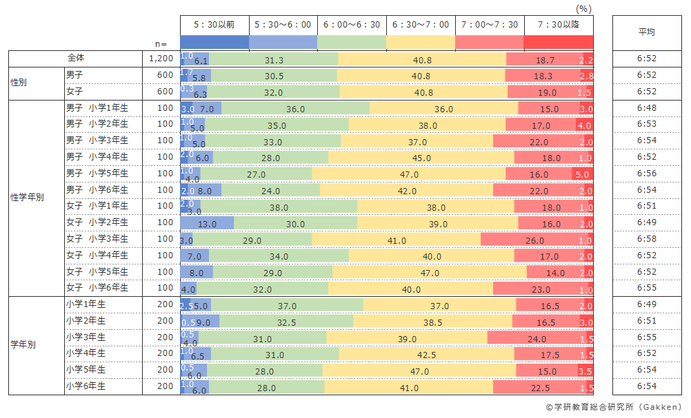 小学生のうちから規則正しい習慣を身につけておきたいところであるが、実際に小学生達は、朝何時頃に起床しているのだろうか。