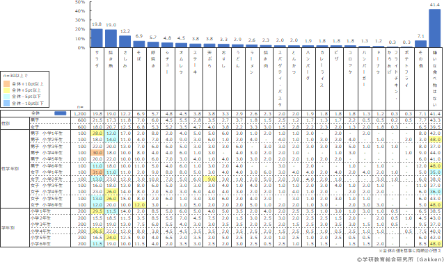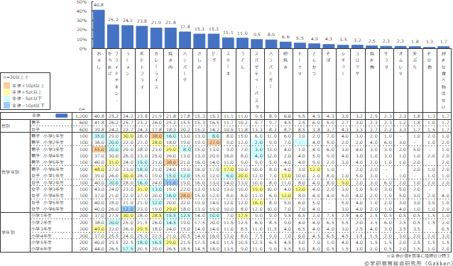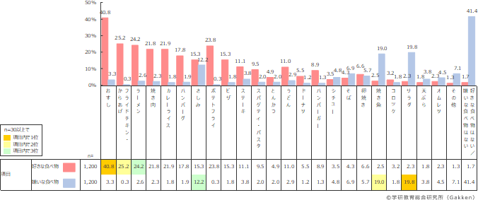 小学生の好きな食べ物と嫌いな食べ物は何だろうか。ここでは、ちょうど30年前の1989年度調査(※1)と比較していく。