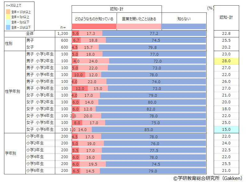 結果は、「知っている」(5.6%)、「言葉を聞いたことがある」(17.3%)。2018年に同様の調査をしたときが、それぞれ、5.8%、13.8%だったので、「聞いたことがある」は3.5ポイント増えてはいるが、保護者にとってはまだまだ馴染みのない言葉であることがわかった。