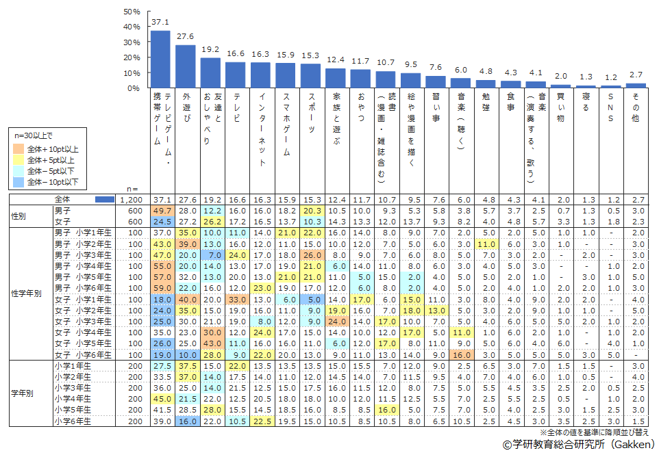 2022年の小学生は、何をしているときが一番楽しいのだろうか。