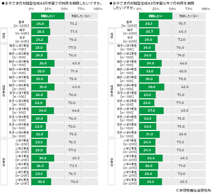 対話型生成AIの利用を制限したいと考えている保護者はどのくらいいるのでしょうか。