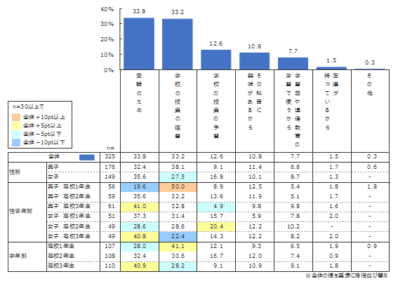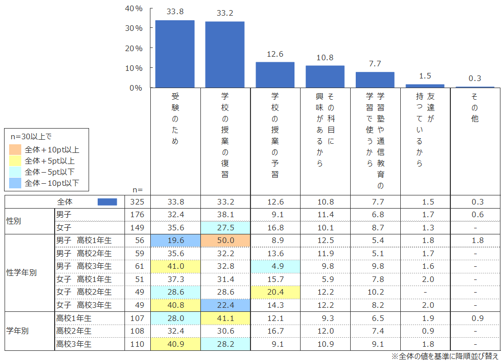 学習参考書・問題集を購入している高校生のみを対象に、購入理由をまとめてみた。