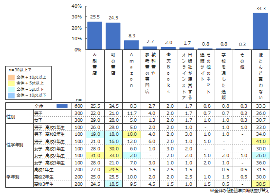 高校生は学習参考書・問題集をどこで購入しているのだろうか。