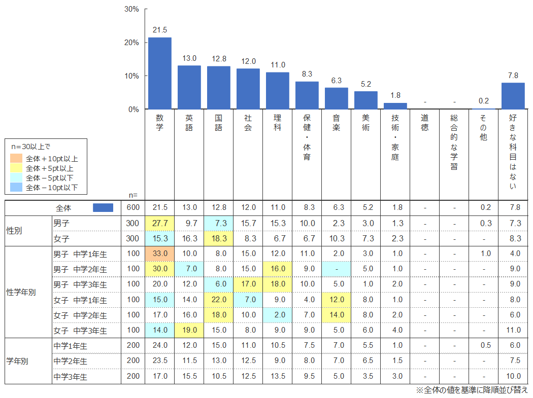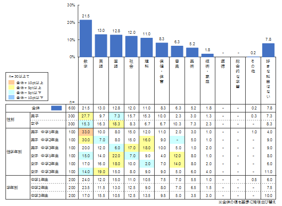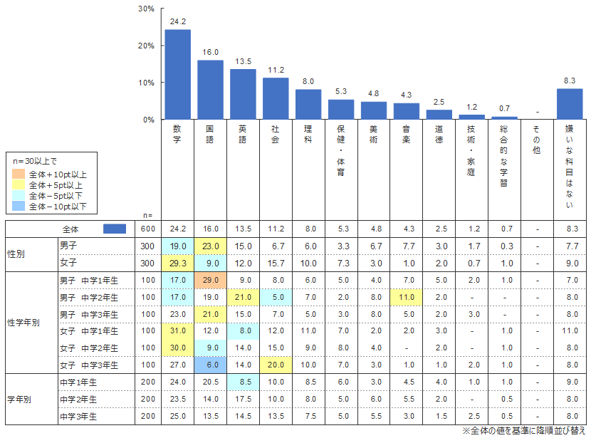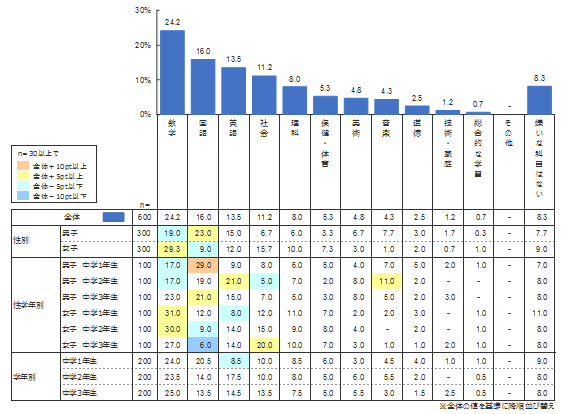 ※1 アンケートの仕組み上、好きな教科と嫌いな教科に同じ教科を選択することはできない。