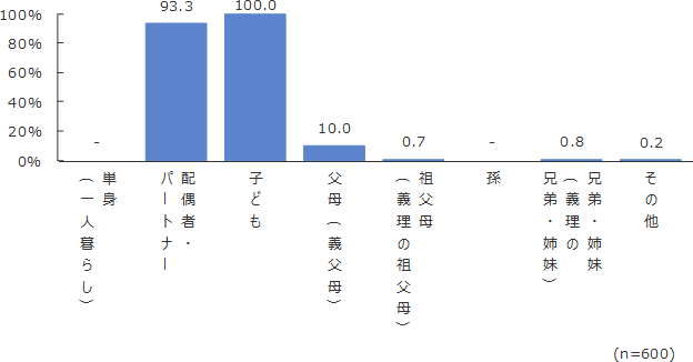 家族構成を見ると、調査対象の約9割は核家族構成である。