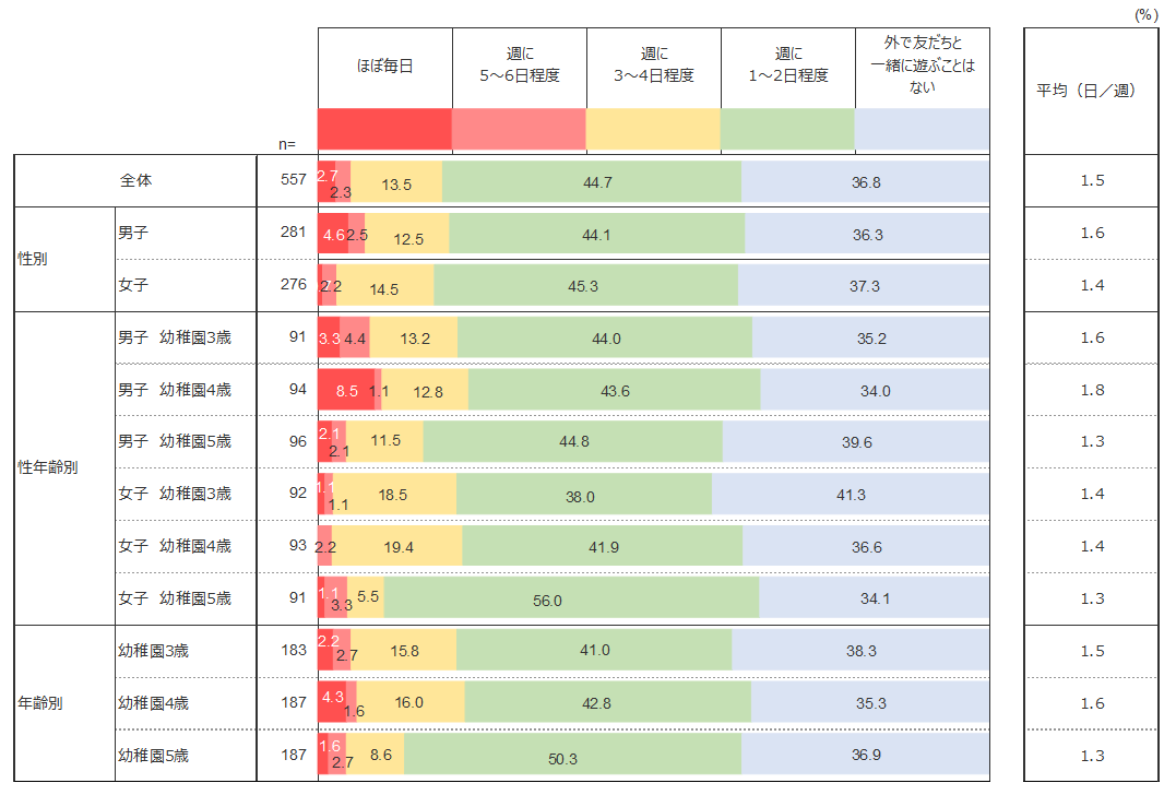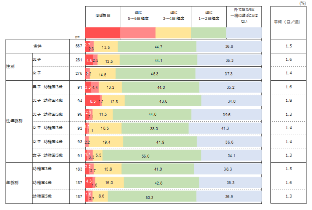 幼児は外で友だちと遊ぶ機会はどの程度あるのだろうか。