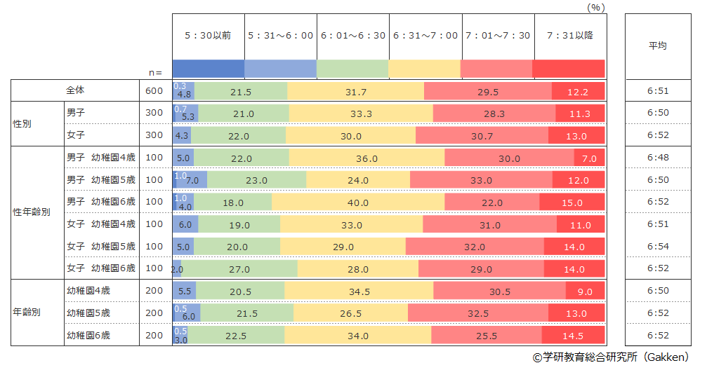 幼稚園に通う幼児の起床時刻は何時頃なのだろうか