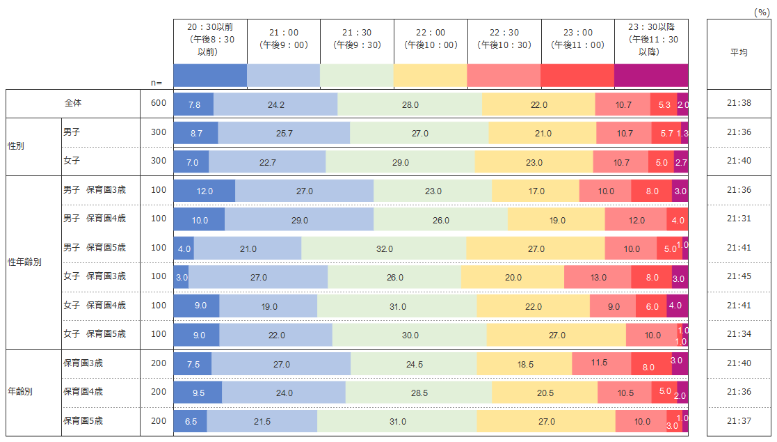 昨今、子どもの生活リズムが夜型になりつつあることが指摘されているが、保育園に通う子どもたちは何時に寝ているのだろうか。